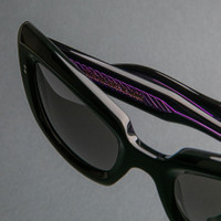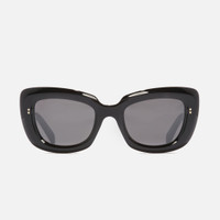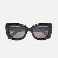 Inspired by a Cutler and Gross frame from the 90s, the 9797 is carved to a retro cat-eye silhouette with a sweeping browline and square lenses. Milling and bevelling add dimension to the design, which is gilded with Compass Star pins. As seen on Naomi Campbell. Details - Handcrafted in Italy by expert craftspeople, read more about our craftsmanship story - Hazard Core Wire - New Minimal Temple - Triple Compass Riveted Temples - Compass Star Pins - Need help? Read our full Glossary of Terms Size & Fit SKU: CGSN-9797-52-01 Frame shape: Cat-Eye Temple length (mm): 145 Lens width (mm): 52 Bridge width (mm): 22