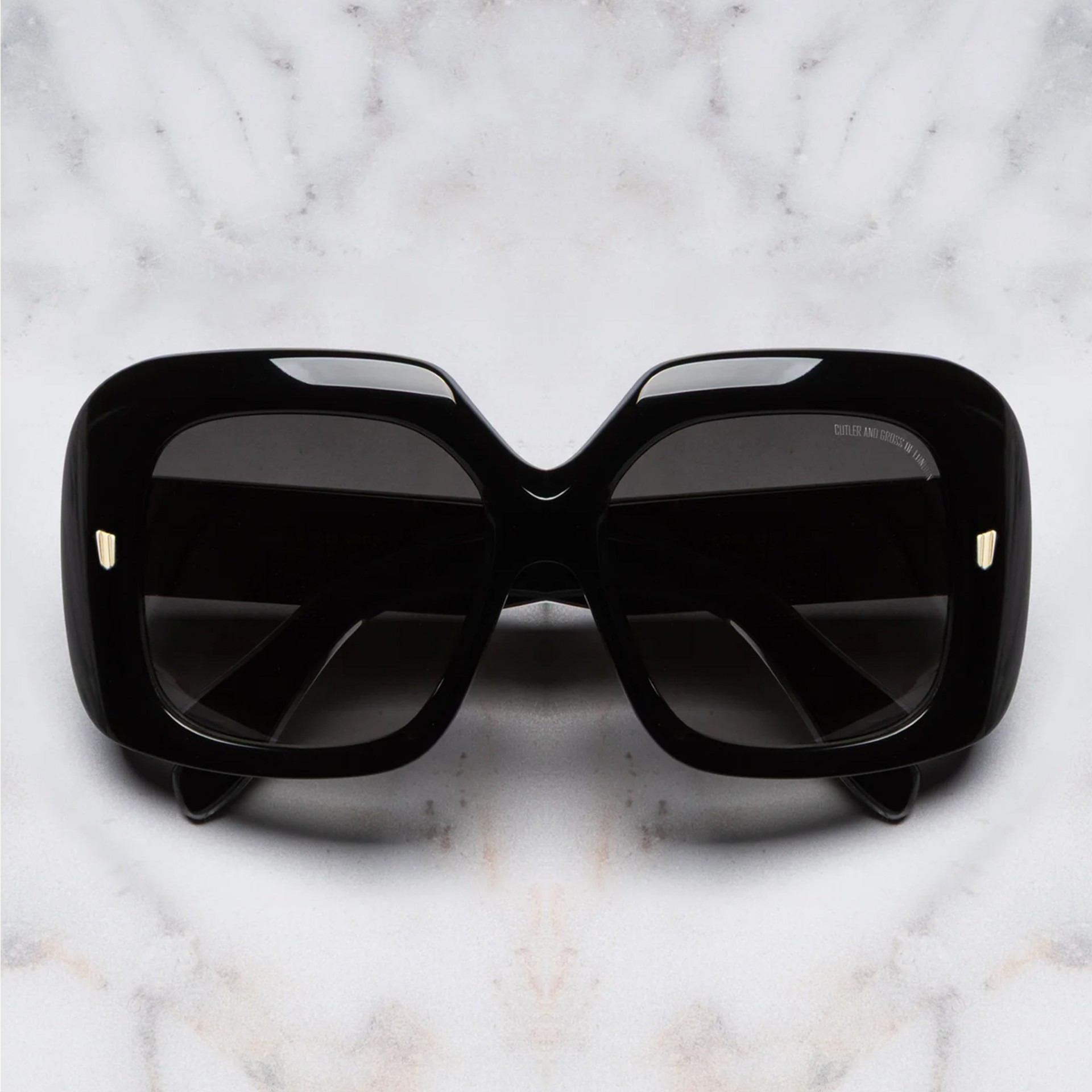 This maximalist frame looks to the large, face-shielding sunglasses worn by luminaries in the 70s. Defined by extravagant proportions, the browline swoops up and around squared lenses, which are accompanied by Oyster pins. Details - 100% UVA and UVB lenses - Oyster frontal pins - Compass Star temple pins - 7-barrel hinges - Fender temples - Modernist core wire - Gold-foil logo on inner temple - Handcrafted in Italy by expert craftspeople, read more about our craftsmanship story Size & Fit SKU: CGSN-9891-56-01 Frame shape: Rectangle Temple length (mm): 145 Lens width (mm): 56 Bridge width (mm): 17