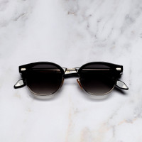 The boldness of the browline and depth of the metalwork lend gravitas to the 0003 sunglass. Created in collaboration with Breitling, the vintage-inspired frame is handcrafted from eco-conscious cellulose acetate to a layered design that exposes the metal components beneath. Details - Breitling Eyewear Collaboration - 100% UVA and UVB lenses - Adjustable nose pads - Luminous arrowhead on inner temples - Superocean Heritage core wire - Gold-foil logo on inner temples - Handcrafted from cellulose acetate - SKU: BRSN-0003-49 Size & Fit Size: Narrow Frame width: 140 mm Temple length: 150 mm Lens width: 49 mm Bridge width: 23 mm Bridge fit: Medium Size Guide. Find your size and fit. Face shape: Oval, square, heart Discover the Face Shape Guide.