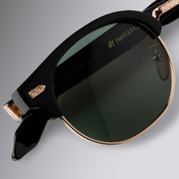 18K Red Gold-plated metalwork has been transformed into an exoskeleton on this Limited Edition sunglass. The vintage-inspired frame, created in collaboration with Breitling, balances a chunky browline with a slim yet intricately engraved nose bridge. Features ZEISS LightPro® sun lenses, which provide excellent digital device-readability and minimise glare. Details - Breitling Eyewear Collaboration - 100% UVA and UVB lenses - ZEISS LightPro® sun lens - Adjustable nose pads - 18K Red Gold-plated Superocean Heritage core wire - Luminous arrowhead on inner temples - Gold-foil logo on inner temples - Handcrafted from cellulose acetate - SKU: BRLE-0003-49-01 Size & Fit Size: Narrow Frame width: 140 mm Temple length: 150 mm Lens width: 49 mm Bridge width: 23 mm Bridge fit: Medium Size Guide. Find your size and fit. Face shape: Oval, square, heart Discover the Face Shape Guide.