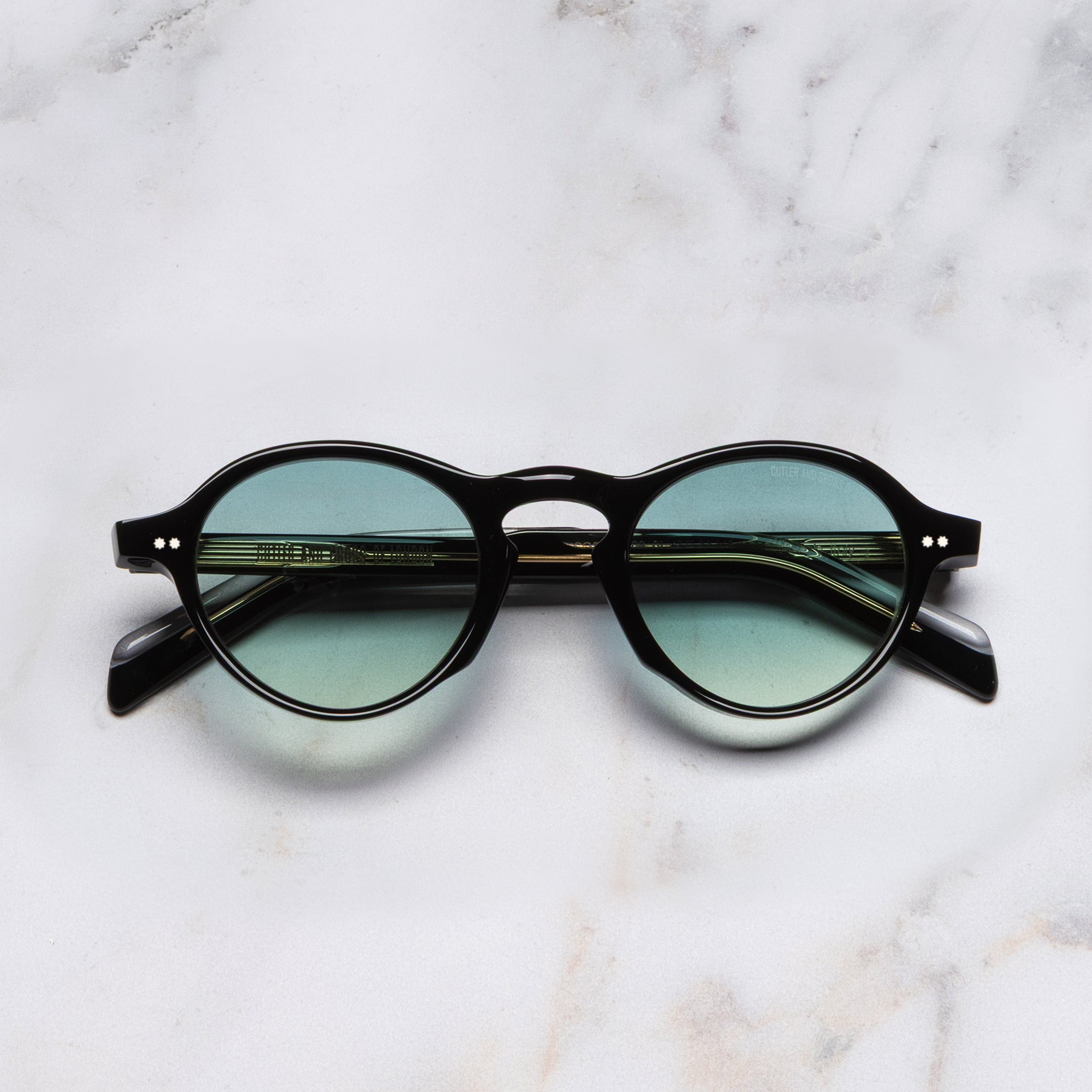 The elegant academia of playwright Arthur Miller in the 60s shaped the GR08 sunglass. It is handcrafted with an undulating browline that culminates in winged lugs. Compass Star pins and Fender temples add signature detail. Designed for slighter face shapes, the Graham Cutler collection scales our bold aesthetic into lighter proportions. Details - Keyhole bridge - Integrated nosepads - Winged lugs - Compass Star frontal and temple pins - Five-barrel hinges Deco core wire - Fender temple tips - Gold-foil logo inside temple - Handmade in Italy Size & Fit SKU: CGSN-GR08-47-01 Frame shape: Round Temple length (mm): 145 Lens width (mm): 47 Bridge width (mm): 22