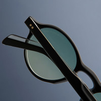 The elegant academia of playwright Arthur Miller in the 60s shaped the GR08 sunglass. It is handcrafted with an undulating browline that culminates in winged lugs. Compass Star pins and Fender temples add signature detail. Designed for slighter face shapes, the Graham Cutler collection scales our bold aesthetic into lighter proportions. Details - Keyhole bridge - Integrated nosepads - Winged lugs - Compass Star frontal and temple pins - Five-barrel hinges Deco core wire - Fender temple tips - Gold-foil logo inside temple - Handmade in Italy Size & Fit SKU: CGSN-GR08-47-01 Frame shape: Round Temple length (mm): 145 Lens width (mm): 47 Bridge width (mm): 22