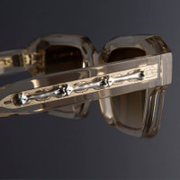The Great Frog's rock'n'roll jewellery meets Cutler and Gross's acetate artistry with these square sunglasses. Hand cast in Sterling Silver, Bones Link and Dagger emblems gild the temples and frontal. The clean-cut shape is reverse-milled and threaded with Lock Down chain core wire. Details - Handcrafted in Italy by expert craftspeople, read more about our craftsmanship story - The Great Frog Collection - Hand cast Sterling Silver Dagger frontal pins - 7-barrel hinges - Hand cast Sterling Silver Bones Link temple pins - Custom Lock Down chain core wire - Gold-foil logo inside temple - Plectrum temple tips - Need help? Read our full Glossary of Terms Size & Fit SKU: GFSN-005-52-04 Frame shape: Rectangle Temple length (mm): 150 Lens width (mm): 52 Bridge width (mm): 20