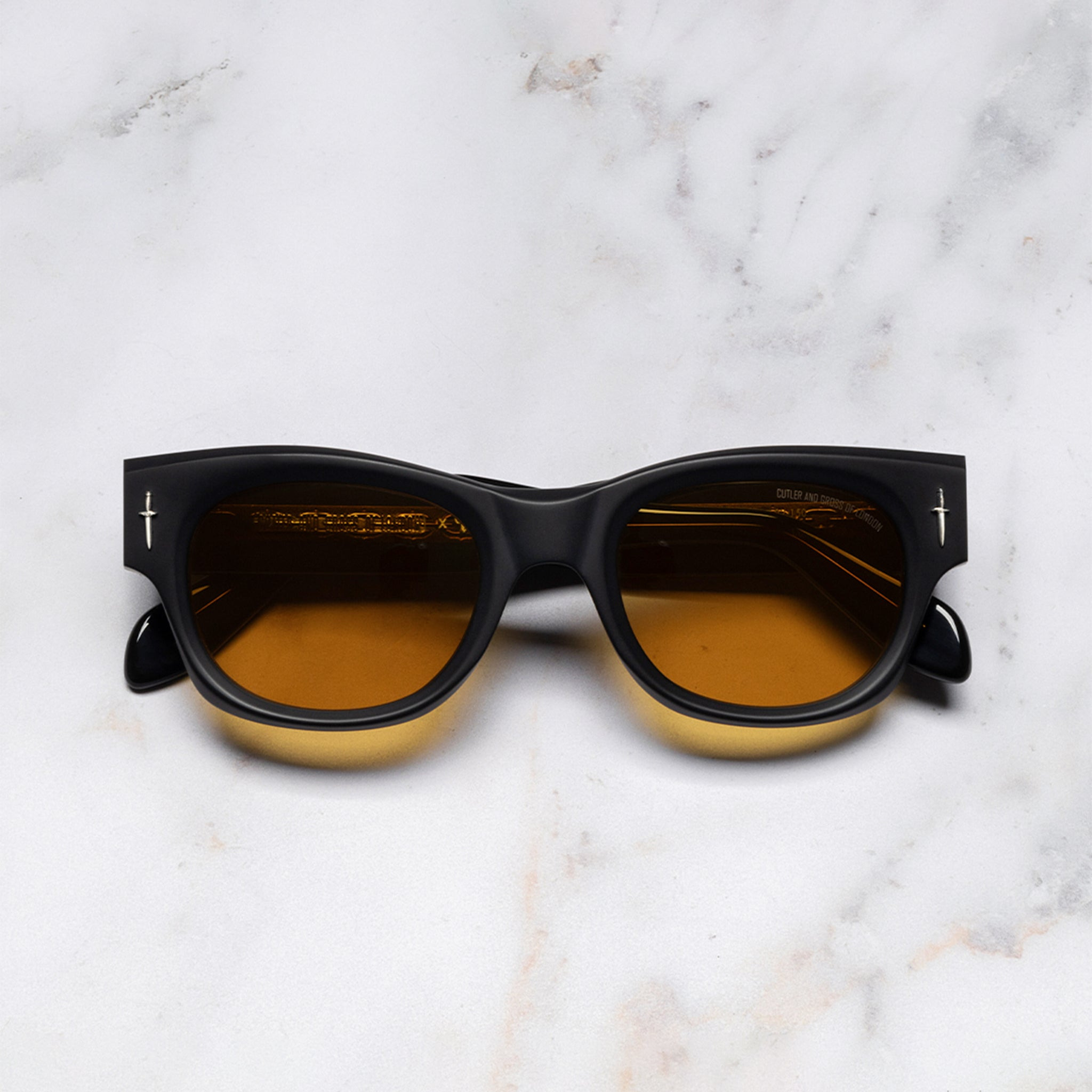 The classic American wayfarer takes a darker turn with this sunglass, created in collaboration with The Great Frog. The brand's gothic jewellery has been translated into solid Sterling Silver Dagger and Lock Down Chain emblems gilding the frame. Secured with hex screws, the chunky temples unfold to reveal The Great Frog's logo beneath. A limited production of 250 frames. Details - The Great Frog Collection - 100% UVA and UVB lenses - Solid Sterling Silver metalwork - Dagger frontal pins - Lock Down Chain trim at temples - Hex screws - Plectrum temples - Lock Down Chain core wire - Gold-foil logo on inner temples - Handcrafted in Italy by expert craftspeople, read more about our craftsmanship story Size & Fit SKU: GFSN-021-51-01 Frame shape: Square Frontal width (mm): 145 Temple length (mm): 150 Lens width (mm): 51 Bridge width (mm): 22