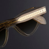Cat-eye sunglasses take an irreverent turn, courtesy of The Great Frog collaboration. This iteration is crafted by hand to an exaggerated 50s-inspired silhouette and spliced by Dagger frontal pins in Sterling Silver. A custom Lock Down chain core wire threads through the temples. Details - Handcrafted in Italy by expert craftspeople, read more about our craftsmanship story - The Great Frog Collection - Hand cast Sterling Silver Dagger frontal pins - 5-barrel hinges - Domed rivets - Custom Lock Down chain core wire - Gold-foil logo inside temple - Plectrum temple tips - Need help? Read our full Glossary of Terms Size & Fit SKU: GFSN-009-52-04 Frame shape: Cat-Eye Temple length (mm): 145 Lens width (mm): 52 Bridge width (mm): 18