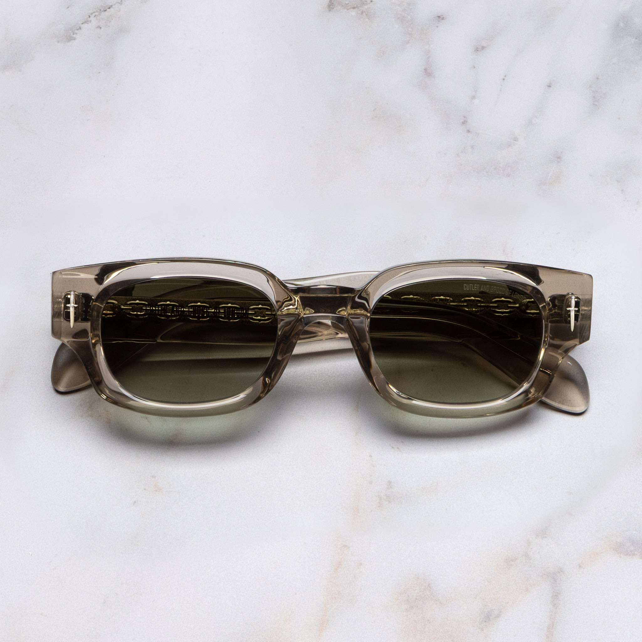 Designed in collaboration with rock'n'roll jeweller The Great Frog, these sunglasses are punctuated with irreverent iconography; a Dagger and Soaring Eagle embellish the front and temple, hand cast from Sterling Silver. They're shaped into a soft, square silhouette that nods to old-school biker frames. Details - Handcrafted in Italy by expert craftspeople, read more about our craftsmanship story - The Great Frog Collection - Hand cast Sterling Silver Dagger frontal pins - 7-barrel hinges - Hand cast Sterling Silver Soaring Eagle temple pins - Custom Lock Down chain core wire - Gold-foil logo inside temple - Plectrum temple tips - Need help? Read our full Glossary of Terms Size & Fit SKU: GFSN-004-50-04 Frame shape: Rectangle Temple length (mm): 150 Lens width (mm): 50 Bridge width (mm): 23