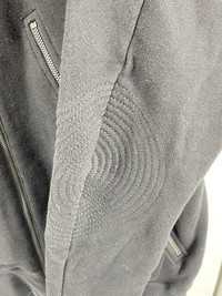 Really cool piece from Ann Demeulemeester 5-zip moto style 100% cotton Shoulder to shoulder: raglan Pit to pit: 21.5in Sleeve length: 19.5in underarm Total length: 28in