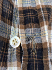Dries Van Noten Flannel size 52 100% cotton Material is lightweight, perfect for Spring/Summer Marked as "Used" because the second to last button hole tore. It has been professionally repaired - please check the pictures. Shoulder to shoulder: 18in Pit to pit: 23in Sleeve length: 26in Total length: 29.5in