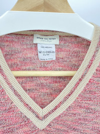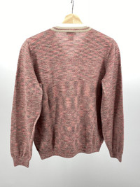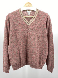 V-neck sweater from my favorite maker of knits, Dries Van Noten size XL but fits more like a small or slim medium - please check measurements for accurate fit 100% merino wool Beautiful marled fabric with hues of red, beige, gray, and pink Shoulder to shoulder: 15in Pit to pit: 20.5in Sleeve length: 24.5in Total length: 25in