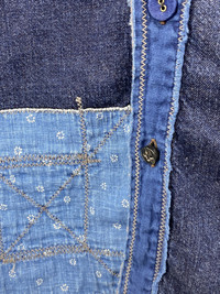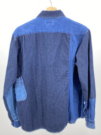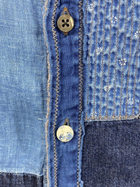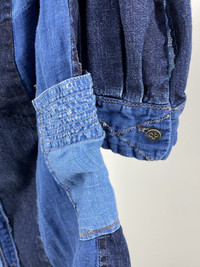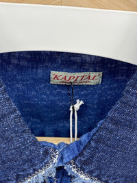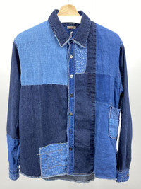 New with tags Kapital Katmandu Patchwork Indigo Denim shirt size 2 made in Japan Shoulder to shoulder: 18in Pit to pit: 21in Sleeve length: 24in Total length: 28in