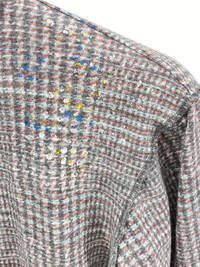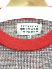 Margiela FW17 3/4 sleeve Pullover 100% Lana Wool Size 48 - fits more like a 44/46, check the measurements Really cool splattered paint detail to the wool check pattern - its subtle but quite unique Shoulder to shoulder: 17in Pit to pit: 19.5in Sleeve length: 21in Total length: 23in