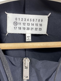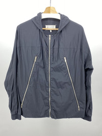 Margiela 5 Zip Windbreaker with hood. A novel take on the famous Margiela 5-Zip leather jacket from SS16 The fabric is sourced from Japan and is water repellent - very cool! Excellent, barely used condition Shoulder to shoulder: Raglan Pit to pit: 22.5in Sleeve length: 20in underarm Total length: 26in (minus hood)