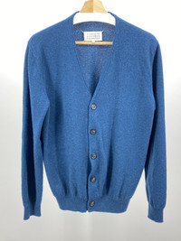 FW12 Margiela Cashmere Cardigan size 1 Fits like a small or a slim medium 100% Cashmere Features a reverse seam neck detail Shoulder to shoulder: 17.5in Pit to pit: 21.5in Sleeve length: 25.5in Total length: 26in