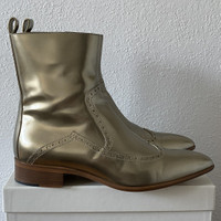 Really cool Margiela Cowboy boots in a size 41/8 They are both silver and gold at the same time, hard to explain. They change color depending on the way the light hits them. Worn twice, sparingly, incredible condition Unique to say the least!