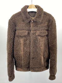 Margiela Sherpa Shearling Trucker Jacket size 50 FW12 Made in Italy Wonderful condition with a small bit of wear on the ends of some parts, its shown in the pictures Please note the materials tag has been taken out Shoulder to shoulder: 18in Pit to pit: 21in Sleeve length: 26.5in Total length: 26.5in