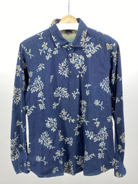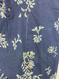 Stunning shirt from 45rpm! This has everything you could want... Technically "vintage" as this is from the r by 45rpm line from the mid to late 2000's. This shirt is immaculate condition and has only ever been tried on. You will never see something this rare in this good of condition again... The discharge print on this shirt is a very interesting floral print and a lighter wash thick indigo stipe on the back that aligns perfectly with the left sleeve - CHECK THE PICTURES! Size 4 but fits a standard small or a slimmer medium frame, please confer with the measurements to insure proper fit Made in Japan Inside the shirt pocket including a the famous stitched "R" being surrounded by other stitching details The buttons are also made of a wood nut and I've never seen these specific ones used on 45rpm items Shoulder to shoulder: 17.75in Pit to pit: 19.75in Sleeve length: 24in Total length: 29.5in