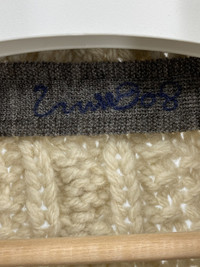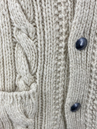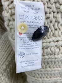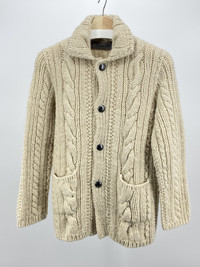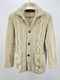 Gorgeous cardigan from the Umii908 line of 45rpm Hand made Cable Knit Metal buttons w/ extra 100% wool size 3 - fits a small the best Shoulder to shoulder: 16in Pit to pit: 20in Sleeve length: 23.5in Total length: 26in