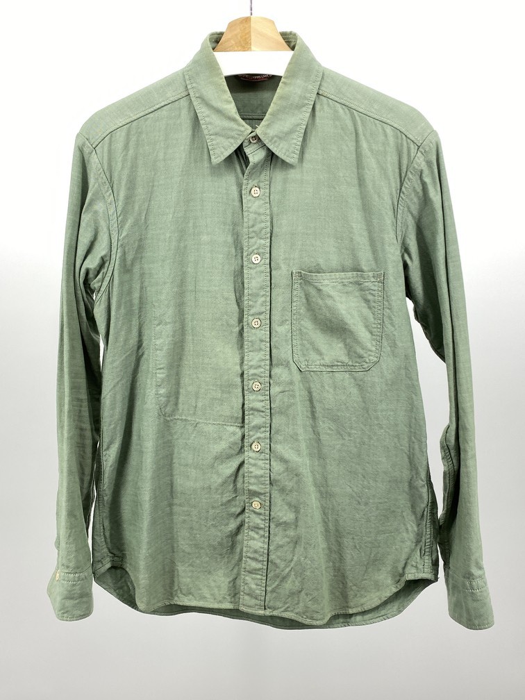 45rpm Umii908 Seafoam Green cotton canvas shirt Size 3 - fits a medium 100% cotton done in a robust canvas style Made in Japan Features an inner pocket - check the pictures Shoulder to shoulder: 18in Pit to pit: 21in Sleeve length: 25in Total length: 29in