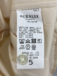 New without tags Auralee Button Up size 5 made in Japan 100% Cotton Mother of Pearl buttons Shoulder to shoulder: 21.5in Pit to pit: 24.5in Sleeve length: 24.5in Total length: 32in