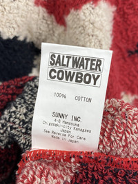 From the now defunct Beams/Sunny Inc line, Saltwater Cowboy, comes this incredibly unique and drool worthy overcoat. A true statement piece! 100% cotton terrycloth made in Japan Size M Shoulder to shoulder: 18.5in Pit to pit: 22.5in Sleeve length: 24.5in Total length: 34in
