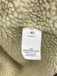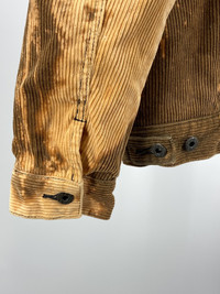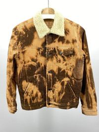 Sample piece from the venerable Japanese label, Japan Blue Tie dye corduroy in the class denim trucker jacket style size 40 - fits a small or a slim medium best Fully lined with faux sherpa Shoulder to shoulder: 18.5in Pit to pit: 21in Sleeve length: 23.75in Total length: 25in