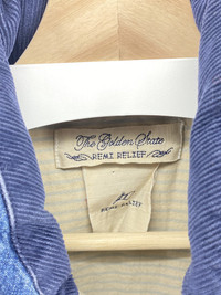 Remi Relief Denim Down Vest Size XL but like all Remi Relief it fits a size+ down, so more like a L or even a M Leather and metal beads pulls on the zippers Embroidered surfer girls on the inside "Used" because the top half is missing two metal buttons to function 100% - other then that it is 9/10 Shoulder to shoulder: 16in Pit to pit: 21.5in Total length: 26in