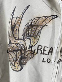 If you're looking at this you know how rare these Great China Wall Swarovski Crystal hoodies are! Generally 1 of 1... Excellent 9/10 condition Size XL, can fit a Large easily or a slimmer XXL - check the measurements Los Angeles motifs Retailed at $2295 Swarovski Crystals adorned throughout with not a single one missing 100% Cotton YKK Zipper Made in the USA Shoulder to shoulder: 22.5in Pit to pit: 24.5in Sleeve length: 28in Total length: 27in