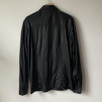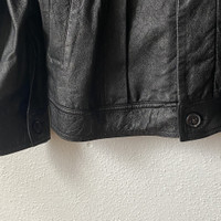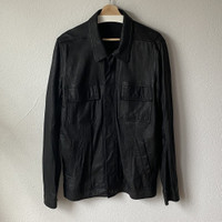 Rick Owens Leather Button Trucker Jacket size L new without tags 100% Lambskin Made in Italy Retailed for $3200 Inner backpack handle Shoulder to shoulder: 18in Pit to pit: 21.5in Sleeve length: 28in Total length: 29.5in