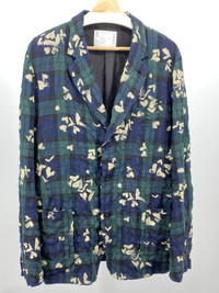 Beautiful linen three button blazer from Sacai. Straight off the runway! Hand painted hearts adorn a luscious check pattern Basically new without tags super rare size 4 - best for an XL or oversized L Made in Japan Working sleeve buttons Shoulder to shoulder: 18.5in Pit to pit: 22in Sleeve length: 27in Total length: 33in