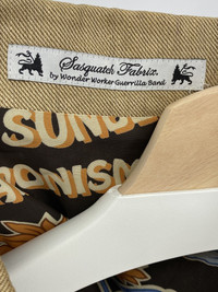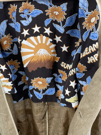 Amazing linen belted trench from Sasquatchfabrix Sample piece so get the chance to own a unique 1 of 1 Excellent, barely worn condition No size tag but fits like a standard Large - please check measurements Quarter lined (check the pictures for the beautiful liner print) with fully lined sleeves Made in Japan Shoulder to shoulder: 17in Pit to pit: 22in Sleeve length: 25.5in Total length: 39in