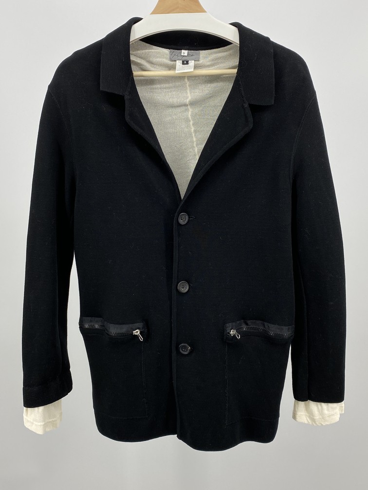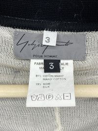 Yohji Yamamoto Pour Homme Zipper Blazer Three Button Made in Italy size 3 Really cool sleeve lining detail where it extends pass the end of the sleeve - check the pictures 81% cotton 19% silk Shoulder to shoulder: 19in Pit to pit: 20in Sleeve length: 23in/25in Total length: 30in