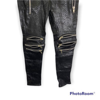 By The R. Multi Zipper Snake Skin Pattern Black denim Snake Skin Printed Good condition One Zipper cannot open/function(right pocket) Rare Design Nice to wear Payment via paypal only Accept offer Shipping:- DHL (7 to 14 days) Local Registered Post(14 to 30days) * Selling used stuff, so please dont expect the item like new. Will state the condition as new for new item. *Strictly no refund, please read the description and refer the photo i have provided. *If you have any question, feel free to ask me, will help as much as i can. *It is best for you to compare the measurement i have provided to your best outfits that you own. Will not responsible for any fault in measurement. Thanks πππ