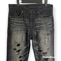 Roen Distressed Black Denim Rare design Good condition Got skull with cross bone Measurement as provided Payment via paypal only Accept offer Shipping:- DHL (7 to 14 days) Local Registered Post(14 to 30days) * Selling used stuff, so please dont expect the item like new. Will state the condition as new for new item. *Strictly no refund, please read the description and refer the photo i have provided. *If you have any question, feel free to ask me, will help as much as i can. *It is best for you to compare the measurement i have provided to your best outfits that you own. Will not responsible for any fault in measurement. Thanks πππ