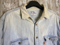 Vintage Orange Tab Denim Shirt Very Used condition Button up Orange tab Got stain, holes and distressed on collar Refer photo Measurement as provided Payment via paypal only Accept offer Shipping:- DHL (7 to 14 days) Local Registered Post(14 to 30days) * Selling used stuff, so please dont expect the item like new. Will state the condition as new for new item. *Strictly no refund, please read the description and refer the photo i have provided. *If you have any question, feel free to ask me, will help as much as i can. *It is best for you to compare the measurement i have provided to your best outfits that you own. Will not responsible for any fault in measurement. Thanks πππ - [ ]