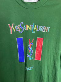 Yves Saint Laurent Spell Out Shirt Gently used Multicolour design Refer photo Measurement as provided Payment via paypal only Accept offer Shipping:- DHL (7 to 14 days) Local Registered Post(14 to 30days) * Selling used stuff, so please dont expect the item like new. Will state the condition as new for new item. *Strictly no refund, please read the description and refer the photo i have provided. *If you have any question, feel free to ask me, will help as much as i can. *It is best for you to compare the measurement i have provided to your best outfits that you own. Will not responsible for any fault in measurement. Thanks πππ - [ ]