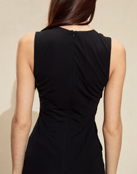 This is not your average LBD. With calder inspired gold applique embellishments that fall across the shoulders, you will feel nothing but special. It’s the kind of piece that doesn’t need much else - style with the Cece Wrap Heel. - Spring/Summer ‘25 - Composition: 96% viscose, 4% spandex - Fully lined - Do not dry clean, hand wash and hang dry - Fit: Model is 5’9 and wears a size S - Size S Measurements: - Length to hem: 32”