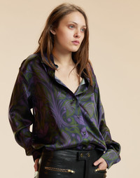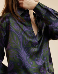 Our best-selling blouse. Your daily rider, now in a purple print. - Regular fit - Button-down front - Covered fabric buttons - Curved hem - Fabric content: 100% silk - Care instructions: dry clean only - Fit: Model is 5'9" and wears a size S - Front length: 27.5" - Sleeve length from shoulder: 23.75"