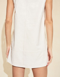 An outfit over-thinkers dream. The perfect leather dress to throw on and instantly look chic and effortless. Throw it on with the Cece Wrap Heel or boots and you're ready for a night out. Complete the look with the matching Downtown Leather Bomber Jacket. - Spring/Summer ‘25 - Composition: 100% leather - Satin lined - Clean by leather specialist - Fit: Model is 5’9 and wears a size S - Size S Measurements: - Length from shoulder to hem: 31" - Neck depth: 12"