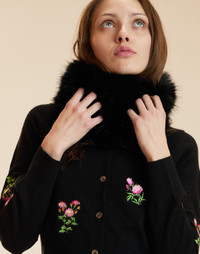 Wear as a headband or a neck warmer as a cozy winter look. - Cozy soft fleece lining - Fur type: Faux - 100% Polyester