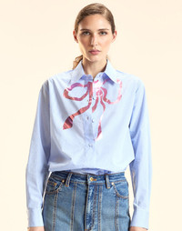 Classic button down silhouette with a twist. - Composition: 100% cotton - Front button down closure - Classic point collar neckline - Regular fit - No stretch - Machine wash cold, hang dry - Fit: model is 5'9" and wears a size S.