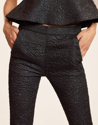 An elevated take on classic black pants, designed to flatter and finished with intricate floral embroidery. Delicate, detailed, and endlessly wearable. - Composition: 100% Polyester - Unlined - Concealed center back zipper - Cropped fit - Mid-to-high rise - Stretch - 2 pockets - Dry clean only - Fit: model is 5'9" and wears a size 2 - Size 2 measurements: - Inseam: 28" - Length: 38.5'