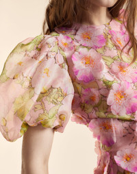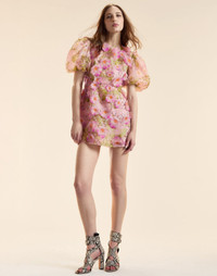 Stop and smell the roses in this beautiful silk 3D floral applique mini dress. - Spring/Summer '25 - Composition: 100% Silk - Dry clean only - Fit: model is 5'9" and wears a size 2. - Size 2 measurements: - Full length: 28.5" - Waist: 14.5" - Bust: 17"