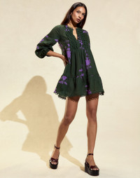 Go from beach to bar without even thinking twice. Made from a lightweight ramie fabric with loop trim detailing. - Composition: 100% Ramie - Relaxed silhouette with front keyhole detail - Machine wash cold and hang dry, but dry clean recommended - Fit: model is 5'9" and wears a size S. - Size S measurements: - Length: 33”