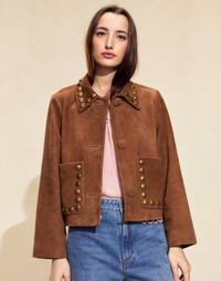 Tough and chic suede with nailheads. You’ll wear this year round and love it for years and years. - Spring/Summer 25' - Composition: 100% Leather - Fully lined - Clean by a leather specialist only - Fit: model is 5'9" and wearing size S. - Size S measurements: - Length: 22”