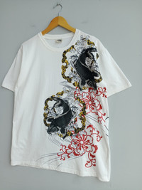 THIS IS USED CLOTHING PLEASE DO NOT EXPECTED IT TO BE LIKE NEW OR DO NOT EXPECT IN PRISTINE CONDITION PLEASE READ THE DESCRIPTION IN DETAIL BEFORE MAKE ANY PURCHASE!! ALL SALES ARE FINALS!! 💥RARE💥Japanese Fish Koi Sukajan White Tshirt Large Condition:Used MANUAL SIZE MEASUREMENT:- Size on tag:3L Fits L Width [armpit to armpit] :22 Inches Length [shoulder to end of garment] :28 inches CODE : J410 PAYMENT POLICY ******************* •Payment processed by Paypal RETURN POLICY ******************* •We Accept Return – With Your Own Return Shipping Cost SHIPPING POLICY ******************* •We ship to worldwide except ISRAEL •Handling time 3-5 Days After Cleared Payment INTERNATIONAL DELIVERY USING DHL and Other Service