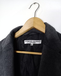 THIS IS USED CLOTHING PLEASE DO NOT EXPECTED IT TO BE LIKE NEW OR DO NOT EXPECT IN PRISTINE CONDITION PLEASE READ THE DESCRIPTION IN DETAIL BEFORE MAKE ANY PURCHASE!! ALL SALES ARE FINALS!! Katharine hamnett London Wool Long Coat Jacket CONDITION:One Broke Button.. But have Spare Button MANUAL SIZE MEASUREMENT:- Size on tag :XL Fits M Width [armpit to armpit] :21 inches Length [shoulder to end of garment] :36 inches CODE : J204 PAYMENT POLICY ******************* •Payment processed by Paypal RETURN POLICY ******************* •We Accept Return – With Your Own Return Shipping Cost SHIPPING POLICY ******************* •We ship to worldwide except ISRAEL •Handling time 3-5 Days After Cleared Payment INTERNATIONAL DELIVERY USING DHL and Other Service