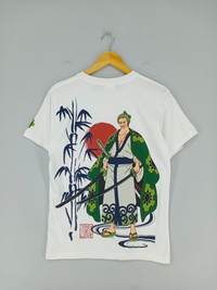 THIS IS USED CLOTHING PLEASE DO NOT EXPECTED IT TO BE LIKE NEW OR DO NOT EXPECT IN PRISTINE CONDITION PLEASE READ THE DESCRIPTION IN DETAIL BEFORE MAKE ANY PURCHASE!! ALL SALES ARE FINALS!! 💥RARE💥One Piece Zoro Ovp Tshirt Condition:Have Minor Stain On Picture Attached Above MANUAL SIZE MEASUREMENT:- Size on tag:M Fits S Width [armpit to armpit] :19 Inches Length [shoulder to end of garment] :26.5 inches CODE : J387 PAYMENT POLICY ******************* •Payment processed by Paypal RETURN POLICY ******************* •We Accept Return – With Your Own Return Shipping Cost SHIPPING POLICY ******************* •We ship to worldwide except ISRAEL •Handling time 3-5 Days After Cleared Payment INTERNATIONAL DELIVERY USING DHL and Other Service