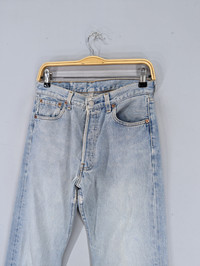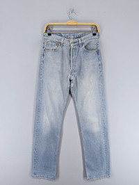 THIS IS USED CLOTHING PLEASE DO NOT EXPECTED IT TO BE LIKE NEW OR DO NOT EXPECT IN PRISTINE CONDITION PLEASE READ THE DESCRIPTION IN DETAIL BEFORE MAKE ANY PURCHASE!! ALL SALES ARE FINALS!! 💥RARE💥Vintage 90s Levi's 501 Light Wash Jeans CONDITION: Distressed,Stain MANUAL SIZE MEASUREMENT:- Size on tag :30 Waist:30 inches Inseam:31 inches Length:41.5 inches Hips:41 inches Leg Opening:15 inches Front Rise:12 inches Thigh:23 inches Material:Cotton 100% CODE :J538 PAYMENT POLICY ******************* •Payment processed by Paypal RETURN POLICY ******************* •We Accept Return – With Your Own Return Shipping Cost SHIPPING POLICY ******************* •We ship to worldwide except ISRAEL •Handling time 3-5 Days After Cleared Payment INTERNATIONAL DELIVERY USING DHL and Other Service