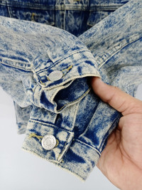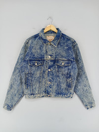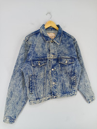 THIS IS USED CLOTHING PLEASE DO NOT EXPECTED IT TO BE LIKE NEW OR DO NOT EXPECT IN PRISTINE CONDITION PLEASE READ THE DESCRIPTION IN DETAIL BEFORE MAKE ANY PURCHASE!! ALL SALES ARE FINALS!! 💥RARE💥Vintage 90s Rouble Acid Wash Trucker Denim Jacket Condition:Used MANUAL SIZE MEASUREMENT:- Size on tag:L Fits M Width [armpit to armpit] :21.5 Inches Length [shoulder to end of garment] :23 inches CODE :J464 PAYMENT POLICY ******************* •Payment processed by Paypal RETURN POLICY ******************* •We Accept Return – With Your Own Return Shipping Cost SHIPPING POLICY ******************* •We ship to worldwide except ISRAEL •Handling time 3-5 Days After Cleared Payment INTERNATIONAL DELIVERY USING DHL and Other Service