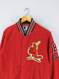 THIS IS USED CLOTHING PLEASE DO NOT EXPECTED IT TO BE LIKE NEW OR DO NOT EXPECT IN PRISTINE CONDITION PLEASE READ THE DESCRIPTION IN DETAIL BEFORE MAKE ANY PURCHASE!! ALL SALES ARE FINALS!! 💥RARE💥Vintage Cardinal MLB Wool Varsity Jacket Condition:Minor Defect And Fading Effect On Back Of Jacket MANUAL SIZE MEASUREMENT:- Size on tag:M Width [armpit to armpit] :21.5 Inches Length [shoulder to end of garment] :26 inches CODE :J518[0.566] PAYMENT POLICY ******************* •Payment processed by Paypal RETURN POLICY ******************* •We Accept Return – With Your Own Return Shipping Cost SHIPPING POLICY ******************* •We ship to worldwide except ISRAEL •Handling time 3-5 Days After Cleared Payment INTERNATIONAL DELIVERY USING DHL and Other Service